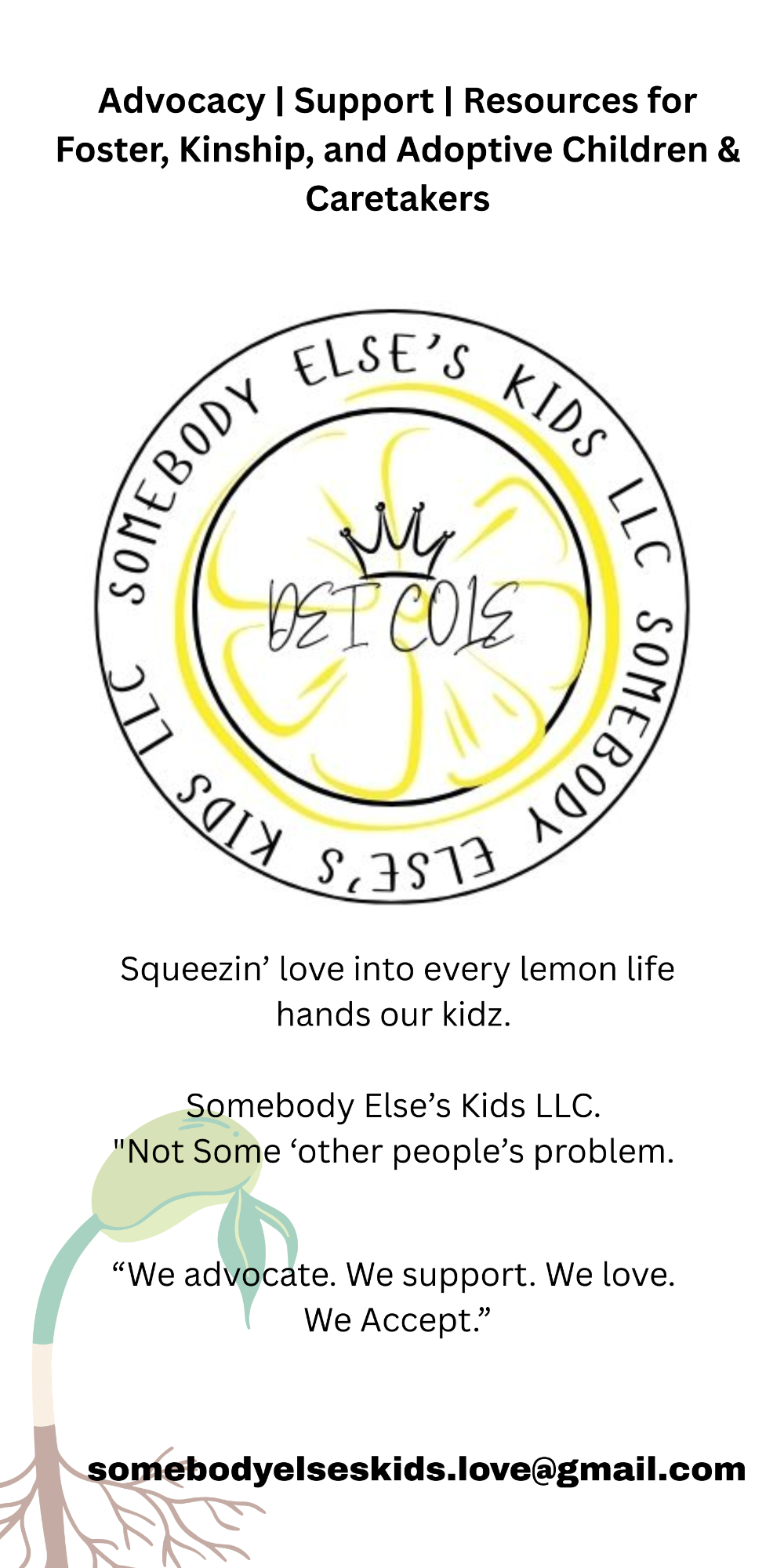 Hi, I'm Dei Cole, Founder of Somebody Else's Kids LLC. A safe space to learn, grow, share — and above all, feel safe. 💛
